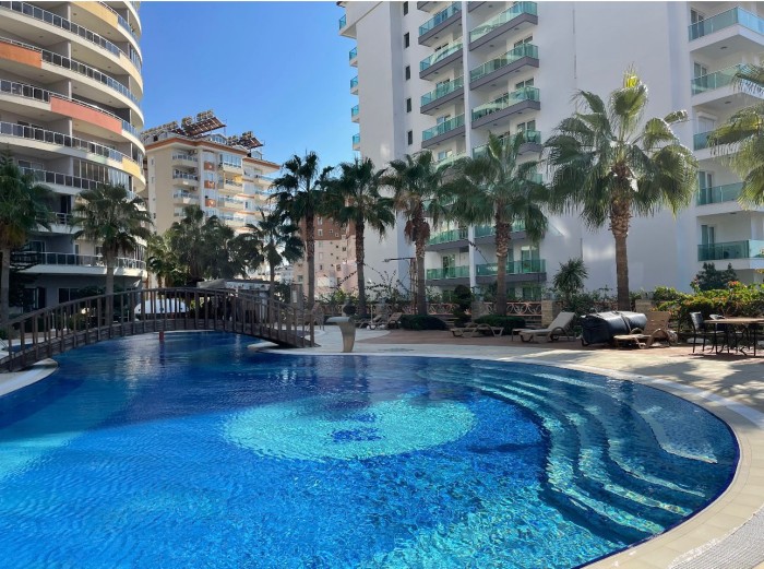 Квартира 1+1 (65 м2) расположена на 5 этаже и имеет следующую планировку: гостиная, совмещённая с кухней, спальня, санузел и большой застекленный балкон. С балкона великолепный открытый вид на Средиземное море, Аланийскую крепость, которая особенно красива в свете закатных лучей и вечерней иллюминации.