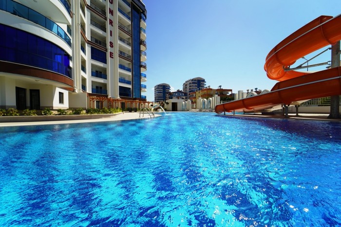 - Открытый бассейн с водными горками