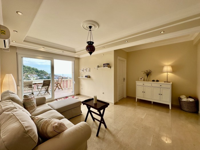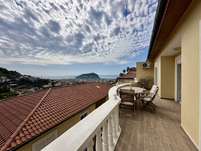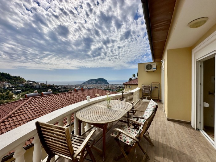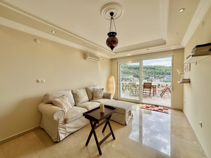 Меблированная квартира 3+1 с видом на море, горы и природу в живописном районе Алании - Тепе.