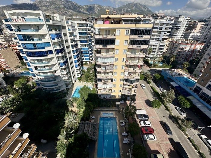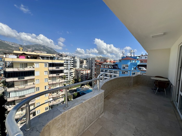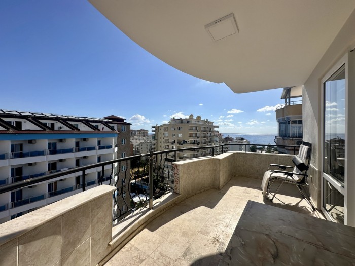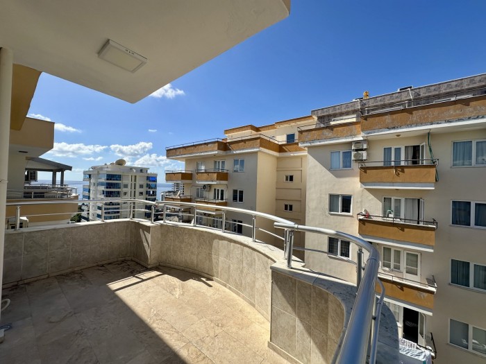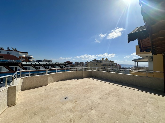 На продажу выставлен большой меблированный 4+1 пентхаус с видом на море и горы всего в 200 метрах до моря в Алании, Махмутлар.