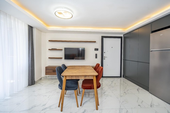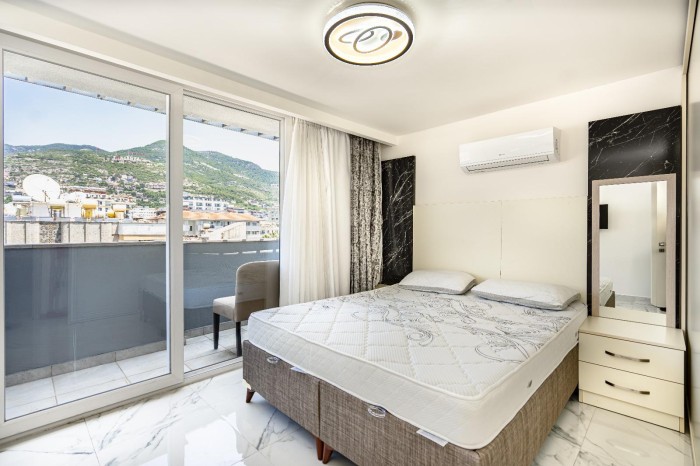 Современная меблированная квартира 1+1 с видом на горы в центре Алании № 10537