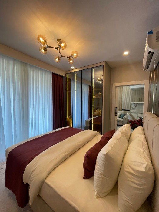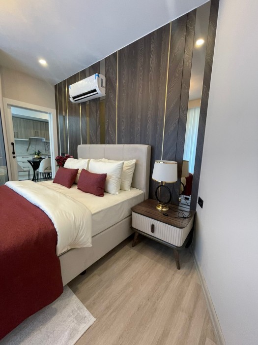 Дизайнерская меблированная квартира 1+1 в комплексе премиум-класса в самом центре Алании, пляж Клеопатры№ 10554