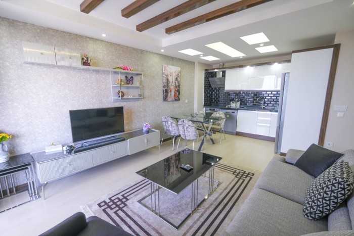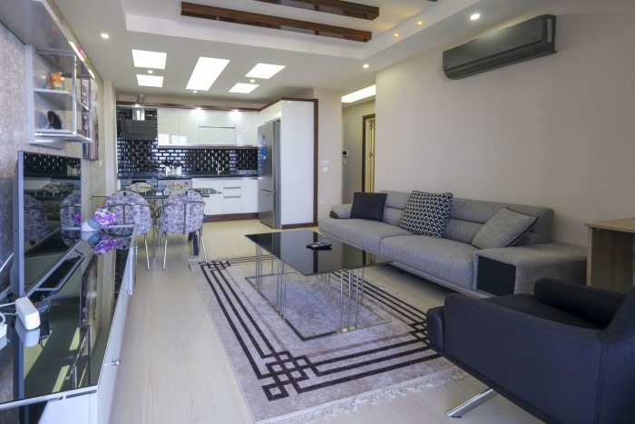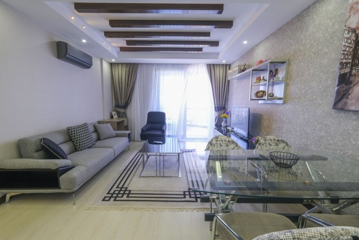 На продажу выставлена современная меблированная квартира 1+1 в жилом комплексе, расположенном в популярном районе Алании - Махмутлар.