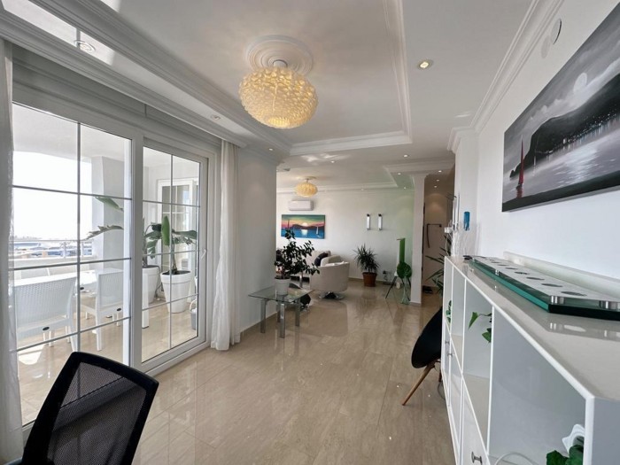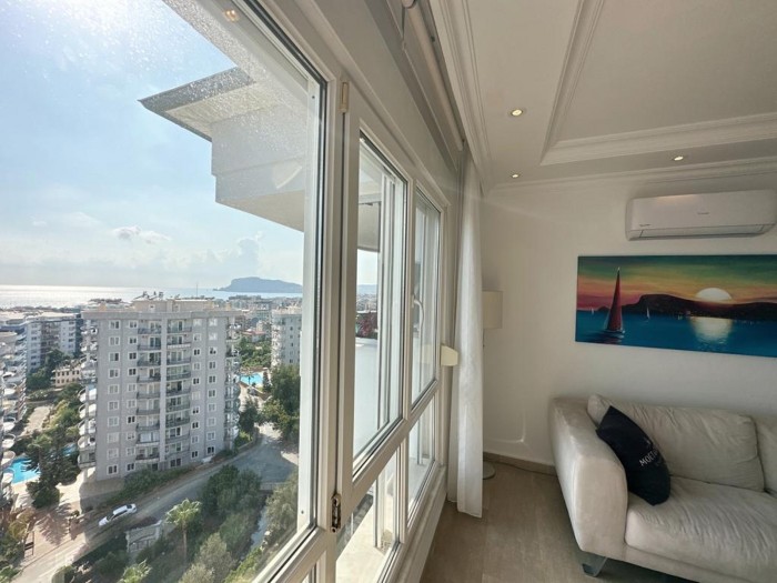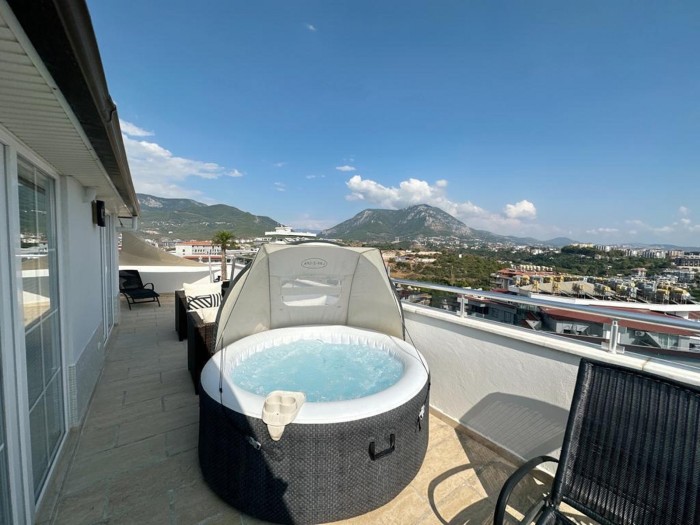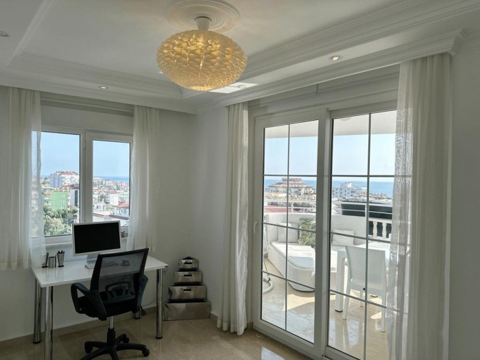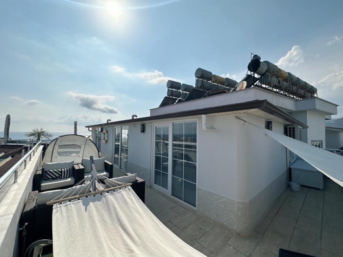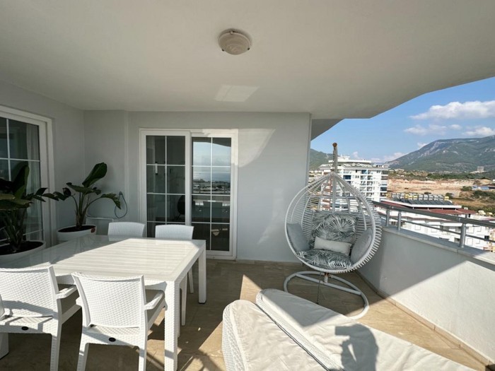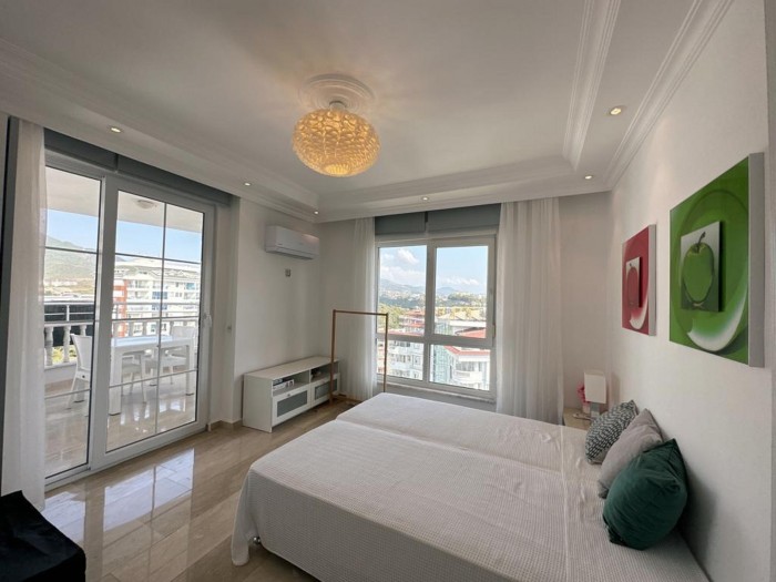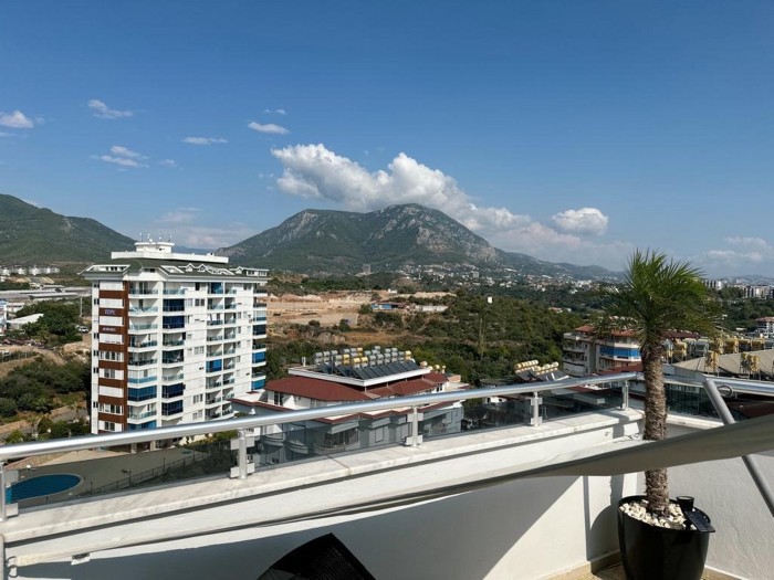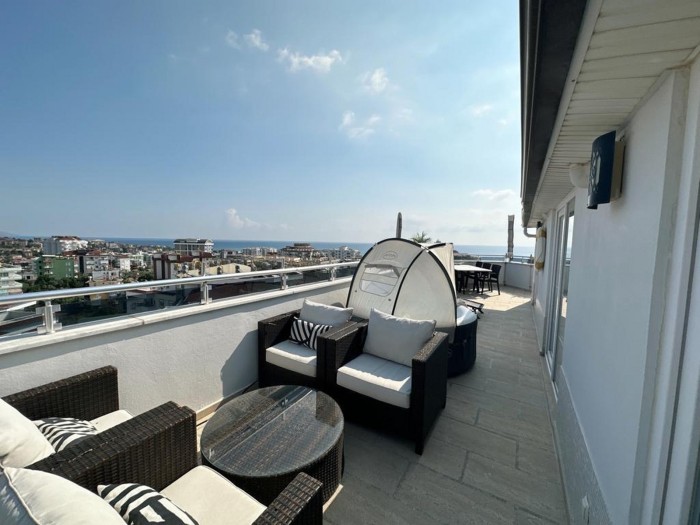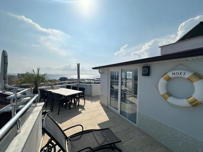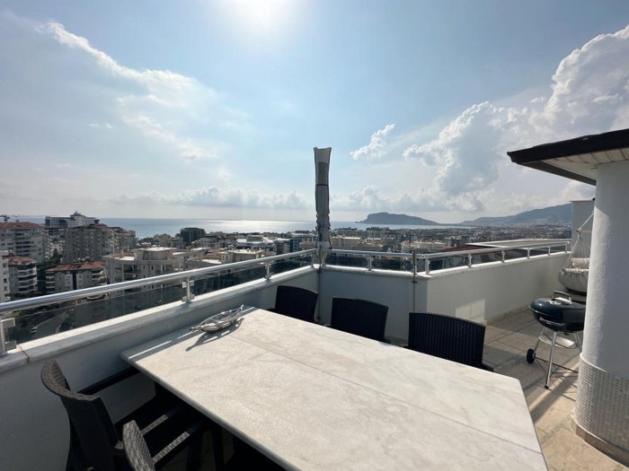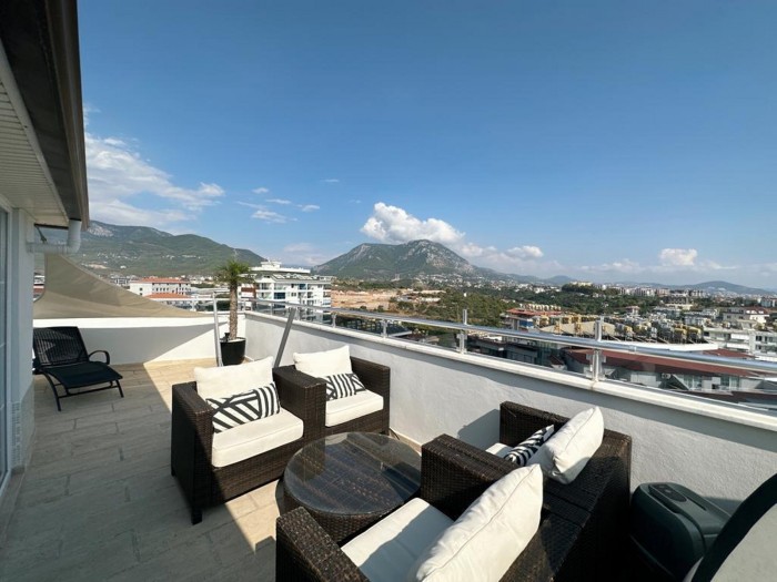 Большой меблированный 4+1 пентхаус с видом на море и горы в 600 метрах до моря в Алании, Тосмур.
