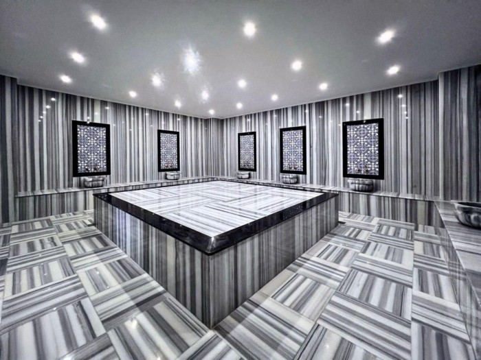 В комплексе прекрасная инфраструктура: открытый и крытый подогреваемый бассейн, сауна, парная, турецкий хамам, детская игровая комната, фитнес-центр, открытая парковка, лифт, генератор.