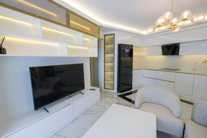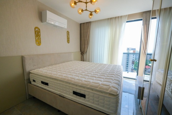 Современная меблированная квартира 2+1 с панорамным видом на море в Алании, Махмутлар № 10593
