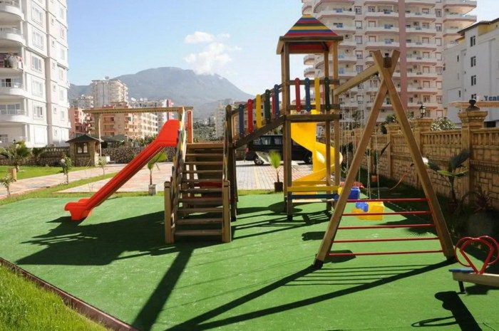 В комплексе большая ухоженная территория, где есть открытый бассейн с водными горками, детский бассейн, детская площадка, беседка, лифт, генератор.