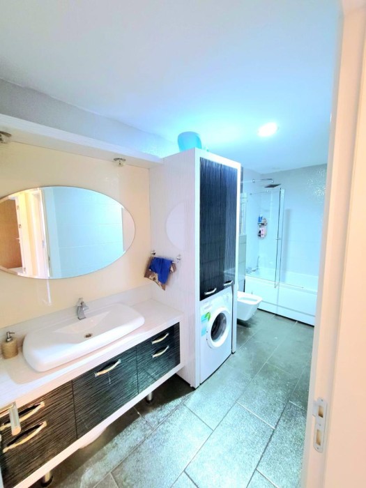 Квартира меблирована, укомплектована бытовой техникой и кондиционерами, подогрев пола в ванной комнате.