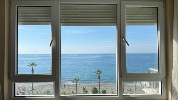Планировка: прихожая, гостиная, совмещённая с кухней, 2 спальни, 2 санузла и просторный балкон с боковым видом на море.