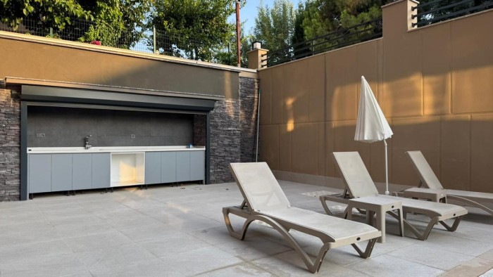 На территории есть открытый бассейн, сауна, фитнес, джакузи, генератор, детская комната, лифт, консьерж.