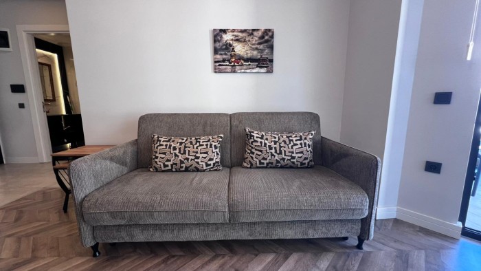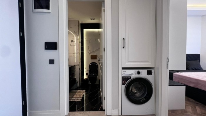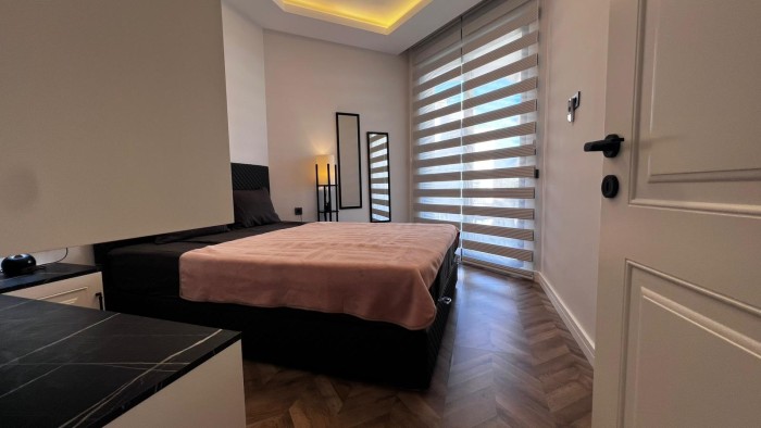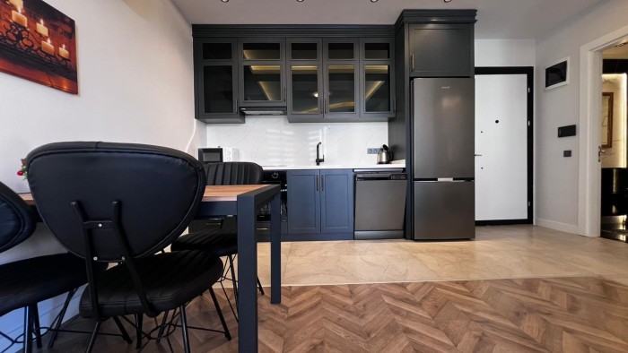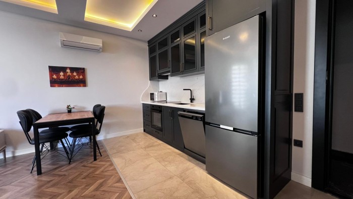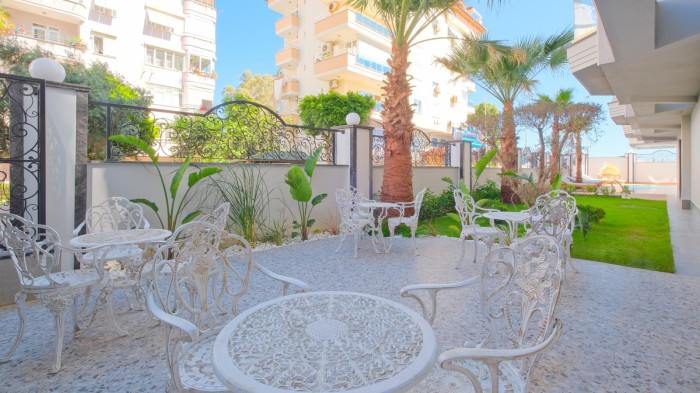 В продаже новая меблированная квартира 1+1 в жилом комплексе на первой береговой линии в центре Алании.