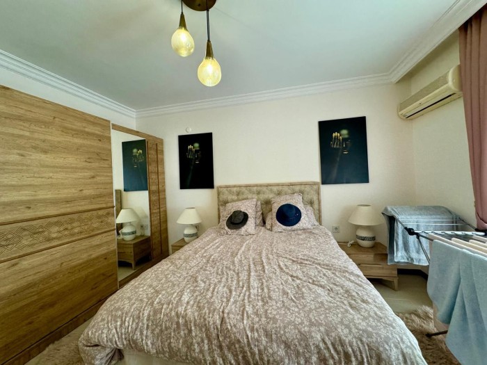 На продажу выставлена меблированная квартира 2+1 с видом на море в жилом комплексе в самом центре района Махмутлар, Алания.
