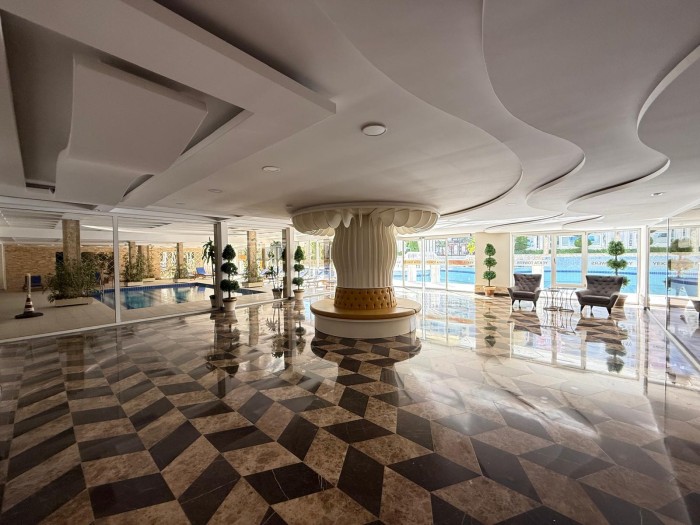 На территории комплекса: открытый бассейн с водными горками, закрытый бассйен, детская игровая площадка, хамам, сауна, фитнес, открытая парковка, консьерж, лифт, генератор.