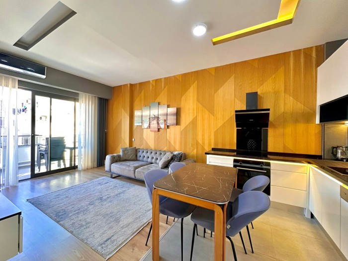 На продажу выставлена меблированная квартира 1+1 в самом центре Алании и всего в 250 метрах до самого известного пляжа с золотым песком Клеопатра.