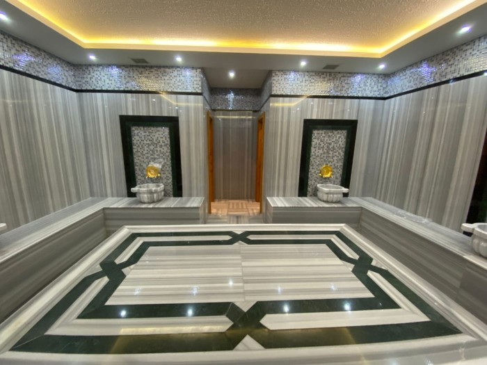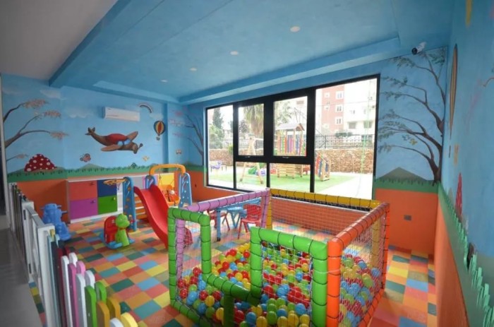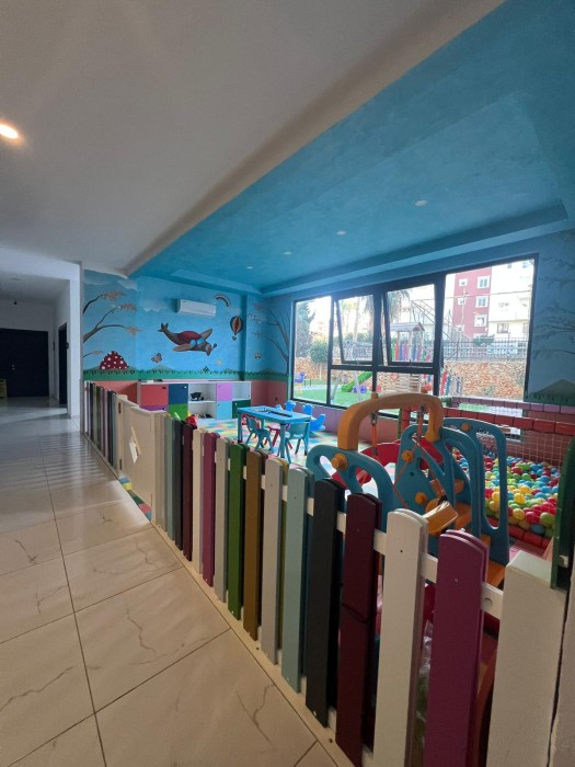 На территории комплекса есть: открытый бассейн, детский бассейн, детская игровая площадка, барбекю, хамам, сауна, фитнес, детская игровая комната, лифт, генератор, консьерж.