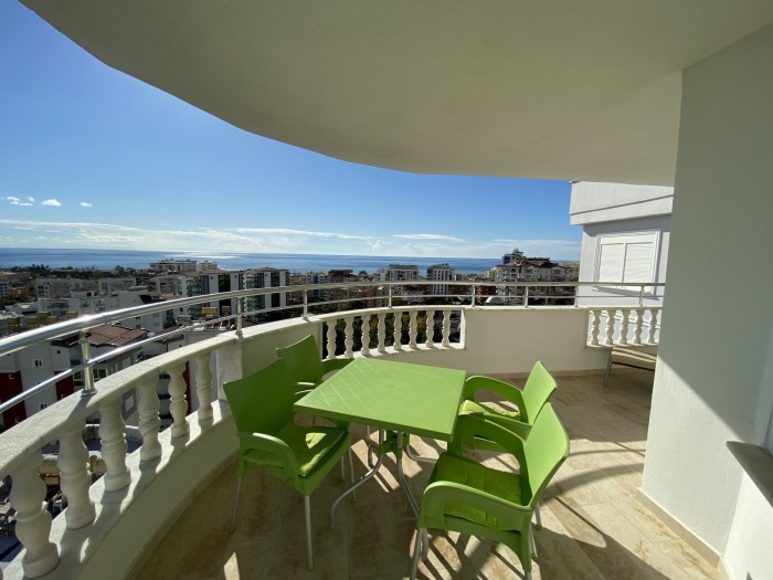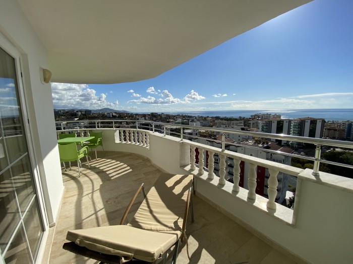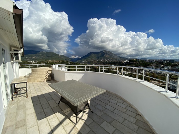 Большой меблированный 3+1 пентхаус с видом на море и горы в 500 метрах до моря в Алании, Тосмур.