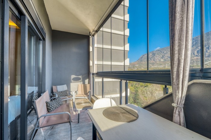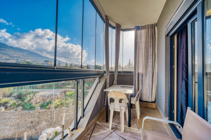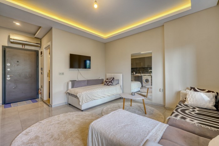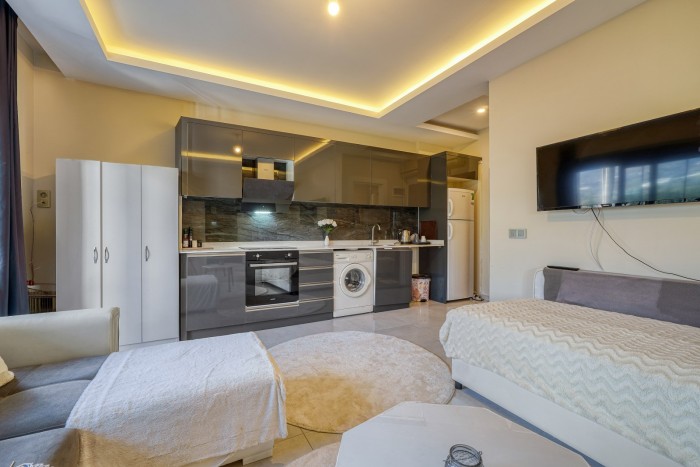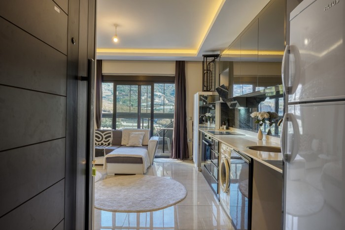 На продажу выставлена меблированная студия с панорамным видом на горы в одном из популярных районов Алании - Махмутлар.
