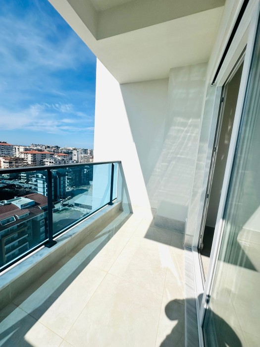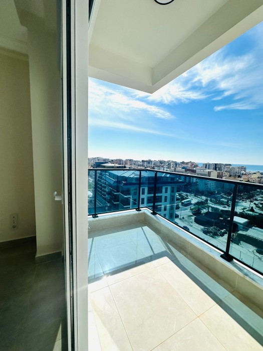 Новая квартира 1+1 с видом на море в современном комплексе в Алании, Махмутлар № 10750