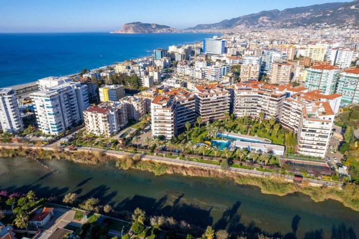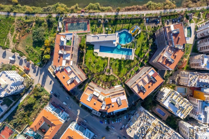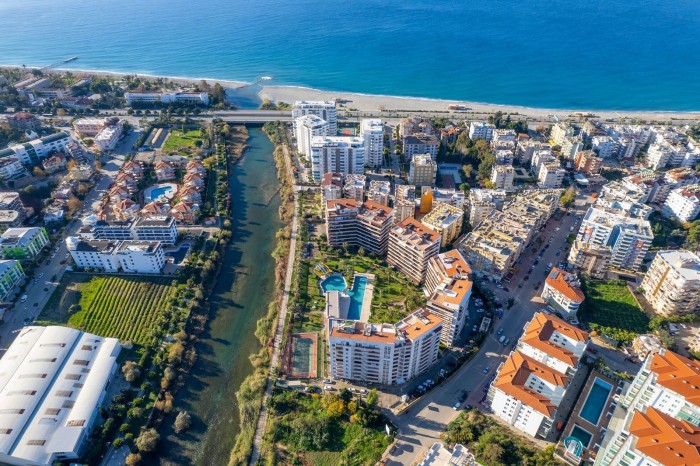 Рядом с комплексом есть сетевые магазины A101 (20 метров), круглосуточный - 70 метров, Şok -100 м, Migros и рынок 400 метров, а ухоженная набережная реки Димчай находится всего в 10 минутах ходьбы.