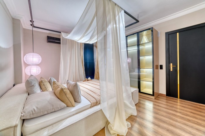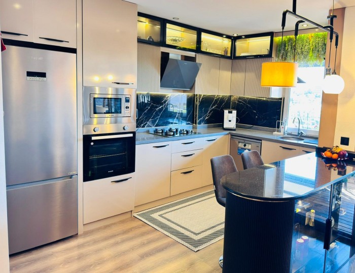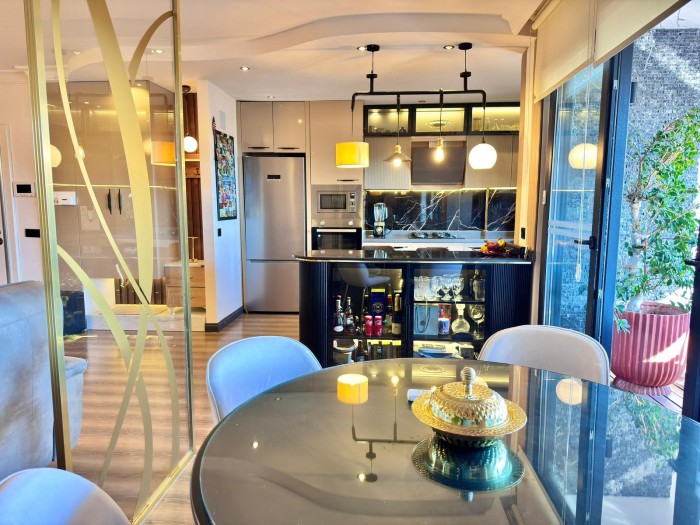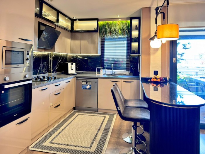 Пентхаус продается с мебелью, техникой, встроенным кухонным гарнитуром и оборудованными санузлами.