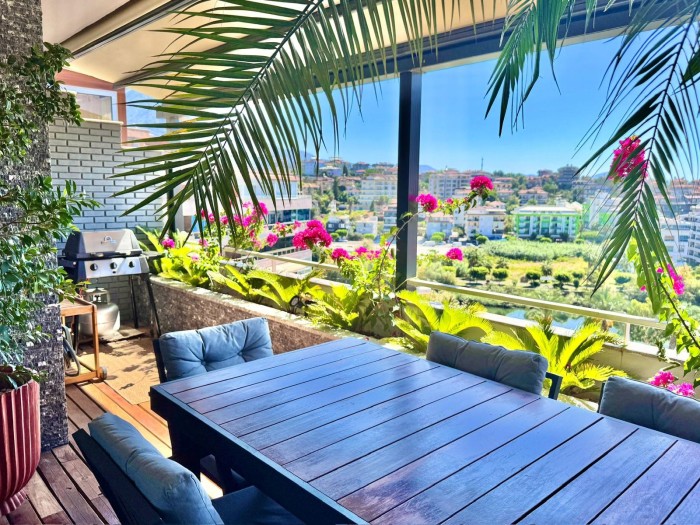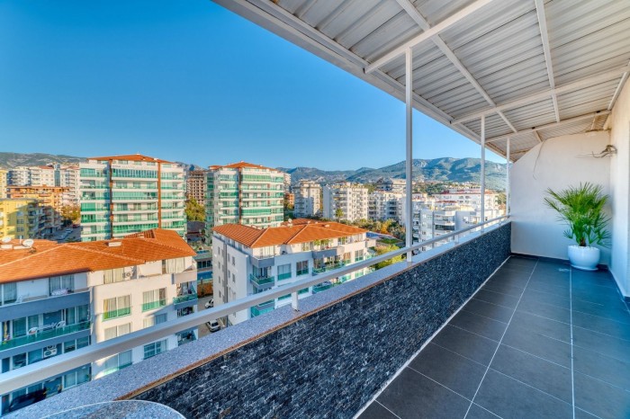 Просторный меблированный пентхаус 4+1 с видом на море и горы в 250 метрах до моря в Алании, Тосмур.
