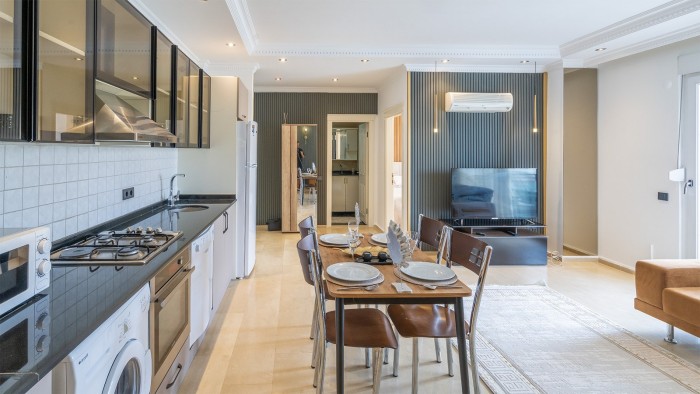 В шаговой доступности супермаркет Метро, школа, продуктовые магазины, ТЦ Аланиум, большой Мигрос, кафе, рестораны и другие социальные объекты.
