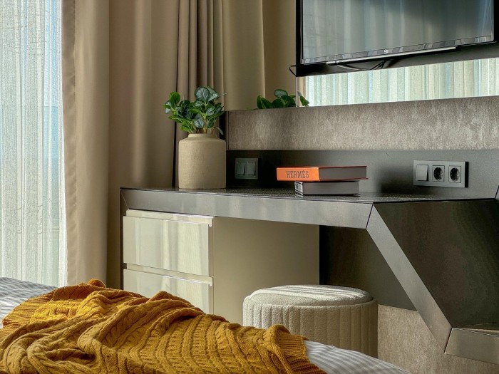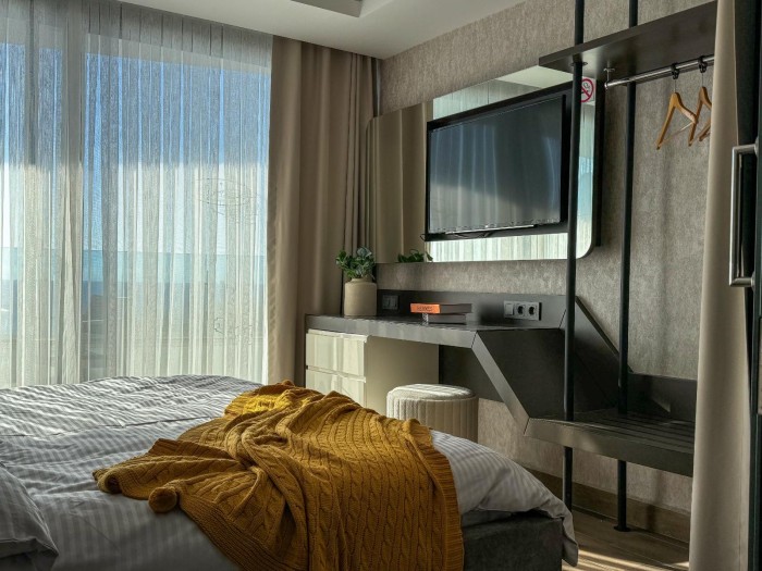 Квартира находится в ультрасовременном комплексе 2014 года постройки, всего в 500 метрах до пляжа. Здесь Вы каждый день сможете чувствовать себя, как на отдыхе в пятизвёздочном отеле!