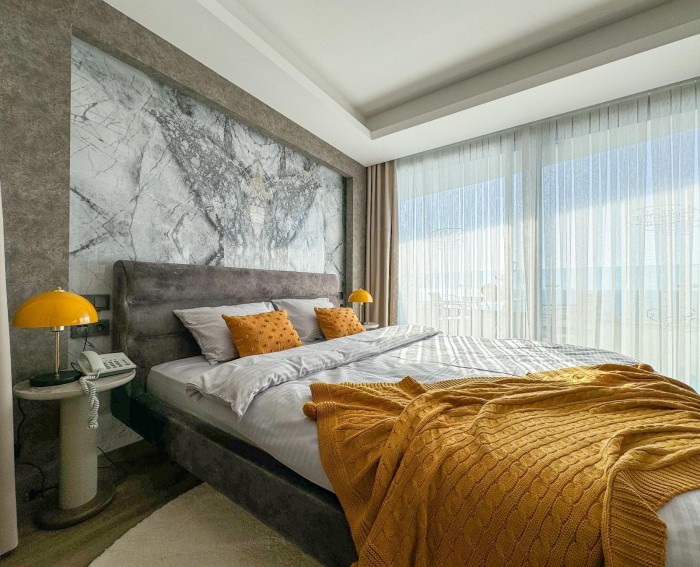 ВНЖ. Меблированная квартира 2+0 с видом на море в Алании, Конаклы № 10828