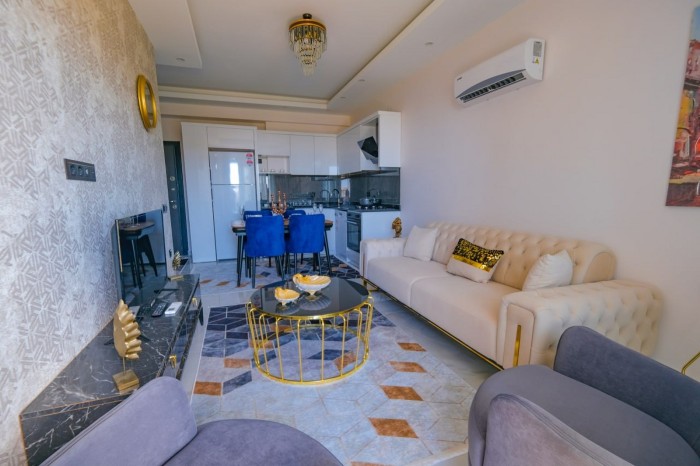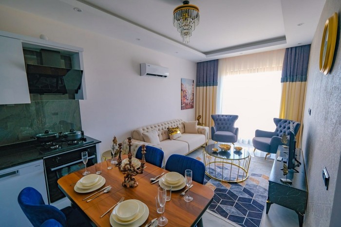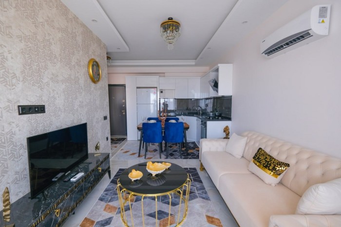 На продажу выставлена меблированная квартира 1+1 в комплексе 2023 года с полной инфраструктурой и отличным расположением в центре популярного района Махмутлар.