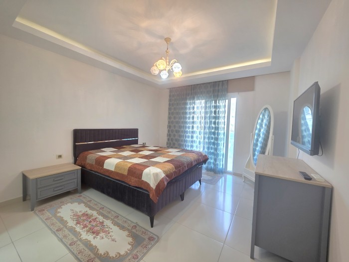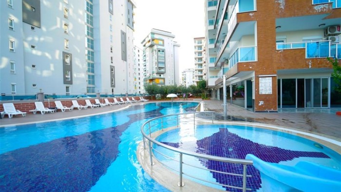 Меблированная квартира 2+1 с видом на горы в жилом комплексе с инфраструктурой в Алании, Махмутлар № 10834