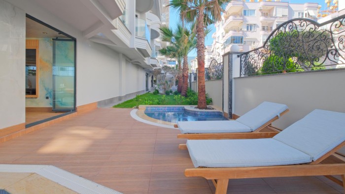 Новые квартиры 1+1 в жилом комплексе с инфраструктурой в центре Алании на первой береговой линии № 5173