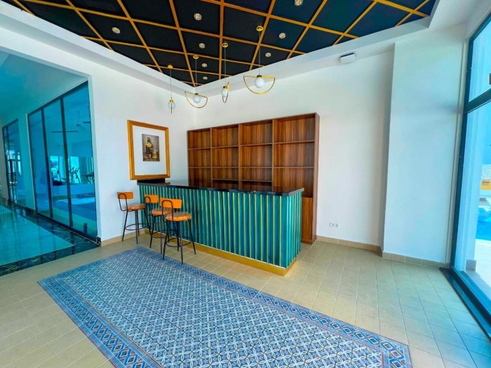 Квартира 1+1 (45 кв.м.) расположена на 6 этаже . Планировка: гостиная, совмещенная с кухней, спальня, санузел и балкон.